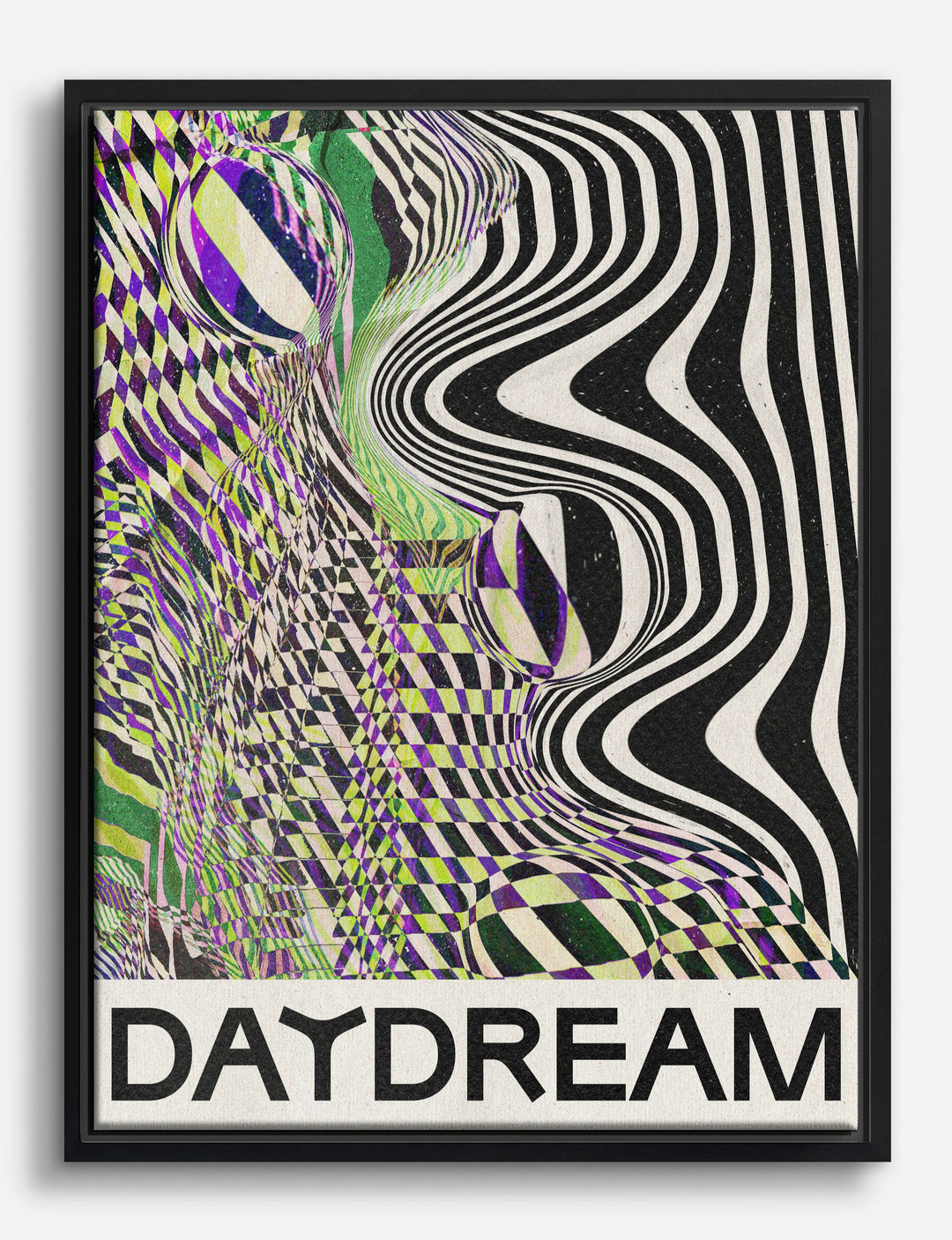Bold waves and dazzling patterns instantly energize your walls, making every day feel a little more electric. This piece radiates playful confidence with vibrant purples, greens, and hypnotic black-and-white swirls—perfect for sparking creativity in your living room or adding a cool, graphic punch to your office.