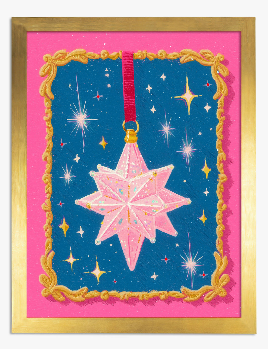 Light up your space with a burst of festive magic. This radiant pink star ornament, set against a dreamy night sky, instantly brings a sense of wonder and joy to any room.