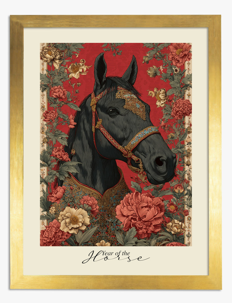 Command the room with this striking portrait—a proud black horse adorned in intricate gold, surrounded by a lush tapestry of blooming flowers. The deep reds and warm earth tones create a sense of both strength and elegance, making any space feel instantly elevated and unique. Perfect for your living room or bedroom, this piece brings a bold yet refined touch to your decor. The rich color palette pairs beautifully with both modern and vintage styles, effortlessly tying together eclectic or classic spaces. Let this artwork inspire you every day—a reminder of resilience, beauty, and the power of self-expression. With Fab, it’s easy to transform your space and make a statement you’ll love coming home to.