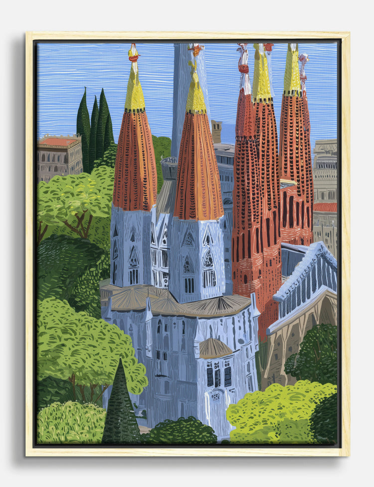 Bold lines and sunlit hues bring the magic of Barcelona right into your home. This piece radiates European adventure and architectural wonder, making it perfect for your living room or a style-forward office. The lush greens and terracotta tones will pop against neutrals or blend beautifully with colorful decor.