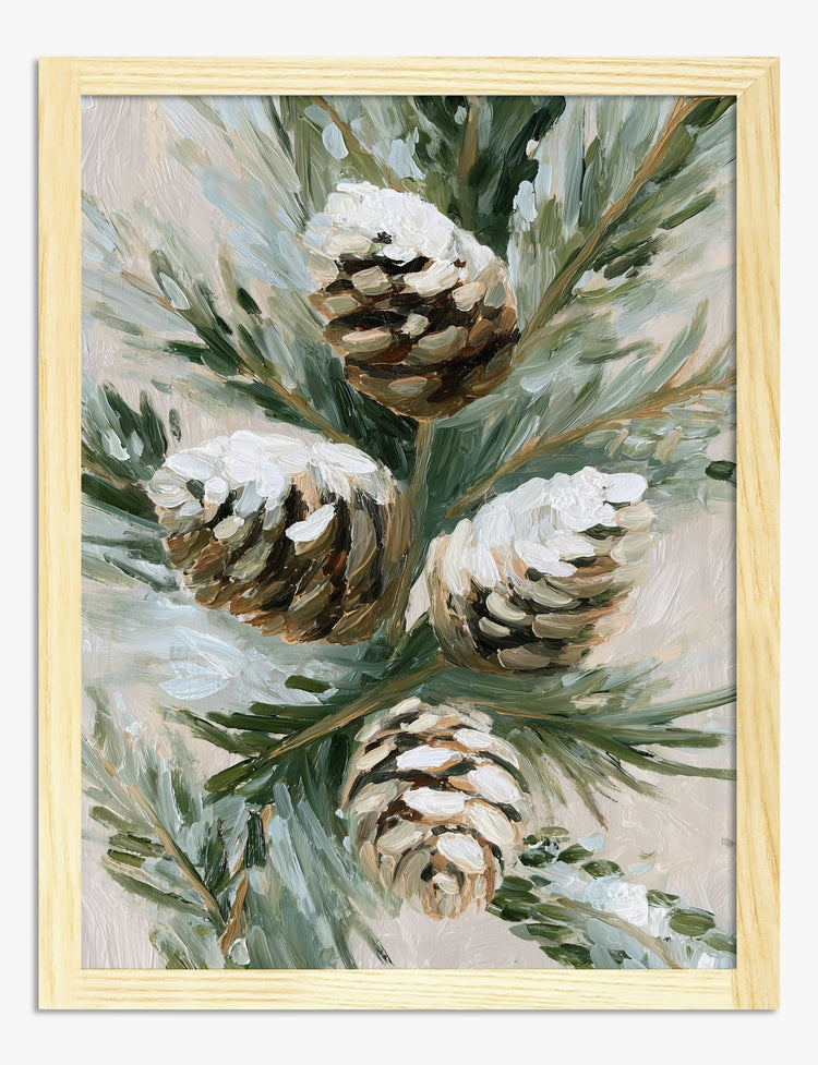 Snowy Pine Cones Art Print