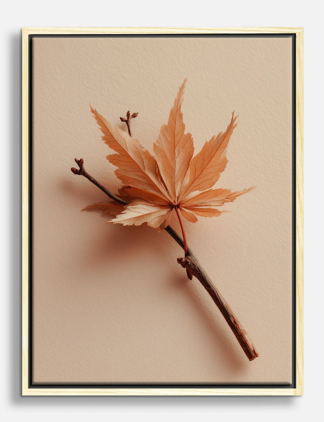 A single leaf, perfectly crisp and delicately veined, brings the quiet magic of fall right to your wall. There’s something peaceful about the way its gentle orange hues rest against a warm, neutral background—it’s like a breath of fresh air for any space.