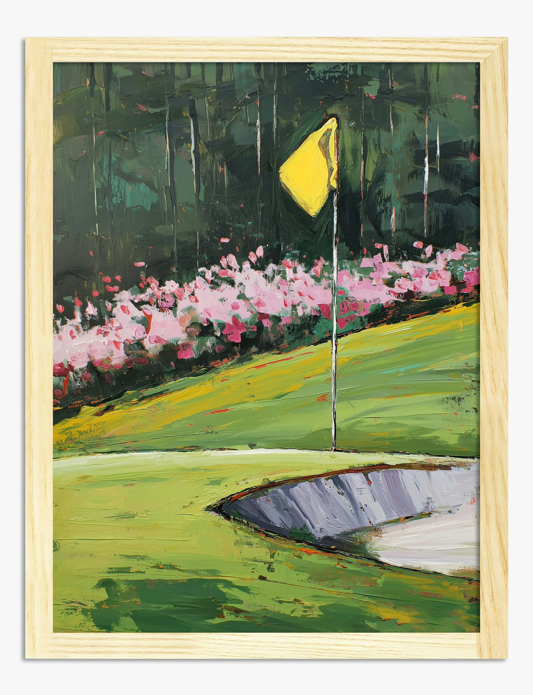 A pop of green and a dash of sunshine—this piece brings the energy of a perfect spring morning right to your walls. You’ll feel the calm focus of the course and the thrill of the game every time you glance its way. The soft pink blooms, lush green grass, and bold yellow flag create a vibe that’s both uplifting and relaxed, making it the perfect pick for your living room or office. Whether you’re a golf lover or just crave a fresh, sporty touch, this print instantly brightens any space. Let this artwork be your daily reminder to pause, breathe, and savor the beauty of the outdoors—no tee time required. It’s effortless style that helps your home feel uniquely you.