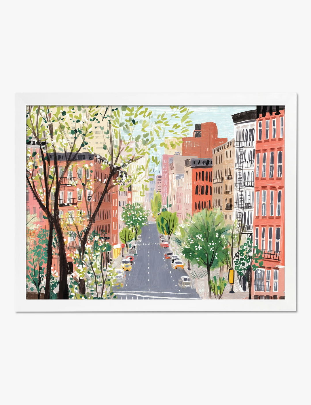 Fresh city mornings come alive in this vibrant street scene, where leafy trees and classic brownstones line a sunlit avenue. Theres an undeniable energy here—one that instantly lifts your space and brings a touch of urban optimism to your walls. Youll love how the cheerful greens and warm brick tones pop against crisp white, making this piece a standout for your living room or hallway. It’s perfect for anyone who wants to add a bit of city charm and everyday adventure to their home, without sacrificing warmth or comfort. Let this artwork remind you that your home can be both stylish and personal—a place where memories are made and your own story unfolds. With Fab, transforming your space into something truly you is as easy as hanging up something you love.