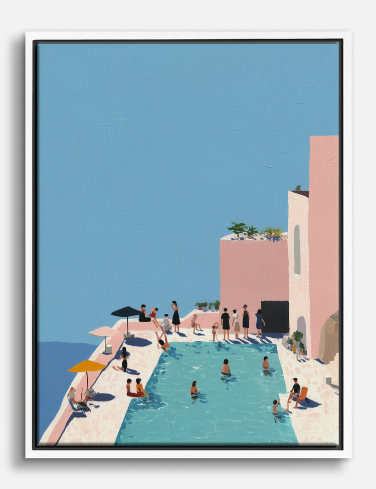 Sun-soaked afternoons and pastel dreams come to life in this breezy poolside scene. Let your walls capture the easygoing spirit of a Mediterranean summer—where laughter echoes, water shimmers, and every day feels like a getaway.