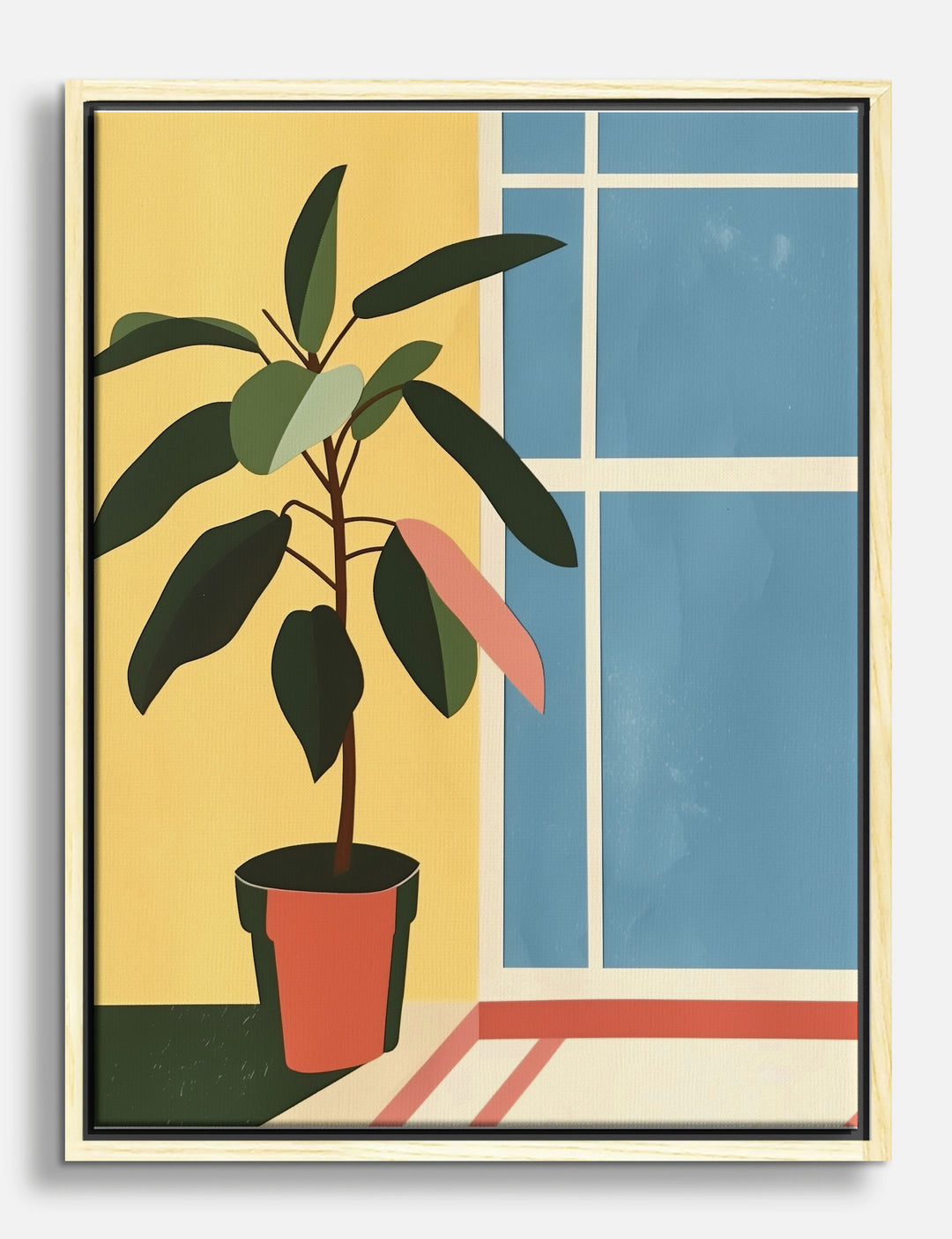 Bring a touch of nature indoors with this vibrant piece that captures the serene beauty of a sunlit houseplant. Perfect for your living room or office, the bold colors and minimalist design offer a refreshing pop to any decor. Let this artwork transform your space into a joyful oasis, where style meets tranquility.