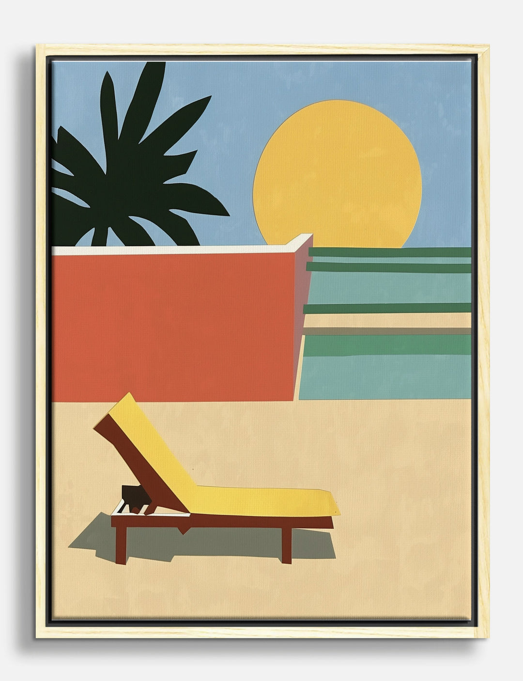 Bask in the warmth of a sunlit terrace every day with this captivating piece. The vibrant hues of a setting sun and the serene silhouette of palm trees bring a touch of paradise to your home. Perfect for your living room or bedroom, this artwork effortlessly complements modern and minimalist decor. Let it transport you to a tranquil escape, adding a splash of style and joy to your space.