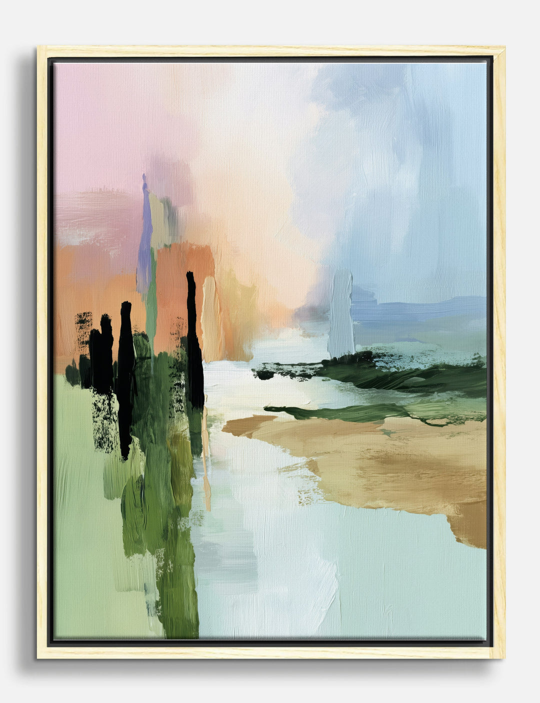 A soft sunrise meets abstract brushstrokes, infusing your space with calm optimism. Gentle greens, warm earth, and misty pastels invite you to slow down and savor the moment—perfect for transforming your living room or bedroom into a peaceful retreat.