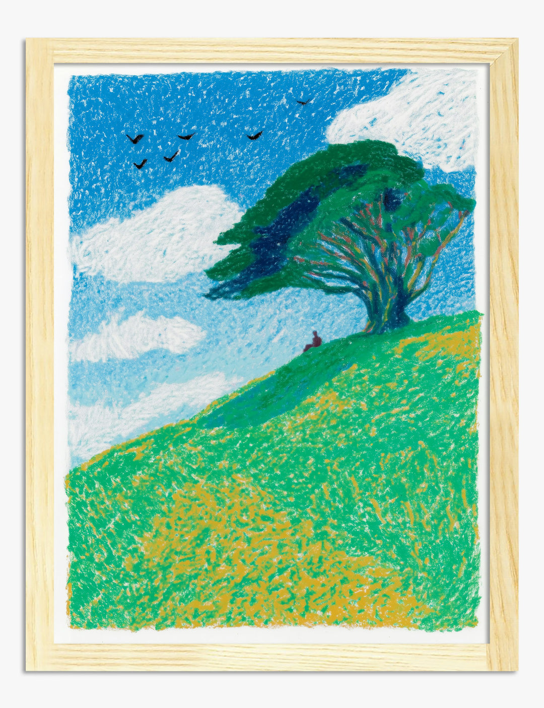 A gentle hillside, dappled with sun and wild color, brings instant serenity to your space. This piece captures that perfect summer moment—blue sky stretching wide, a single tree offering shade, and the quiet company of birds overhead. Let this scene infuse your living room or bedroom with a sense of calm and possibility. Its vibrant greens and blues pop against neutral or minimalist decor, while the hand-drawn texture adds a uniquely personal touch. If you’re looking for a daily reminder to pause, breathe, and enjoy the view, this is your new favorite wall accent. You’ll feel proud showing off a space that feels as joyful and open as a summer afternoon.