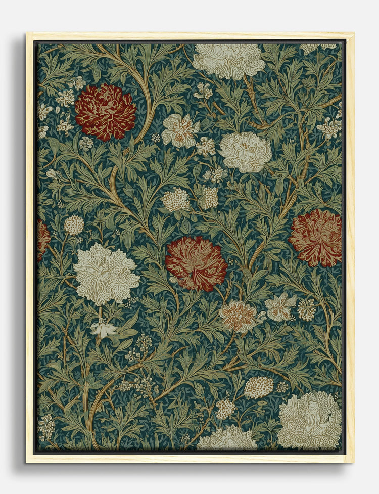 Rich botanical elegance meets timeless style in this William Morris-inspired floral. Earthy reds, soft creams, and leafy greens pop against a lush blue background, creating a sense of vintage sophistication that instantly elevates your space.