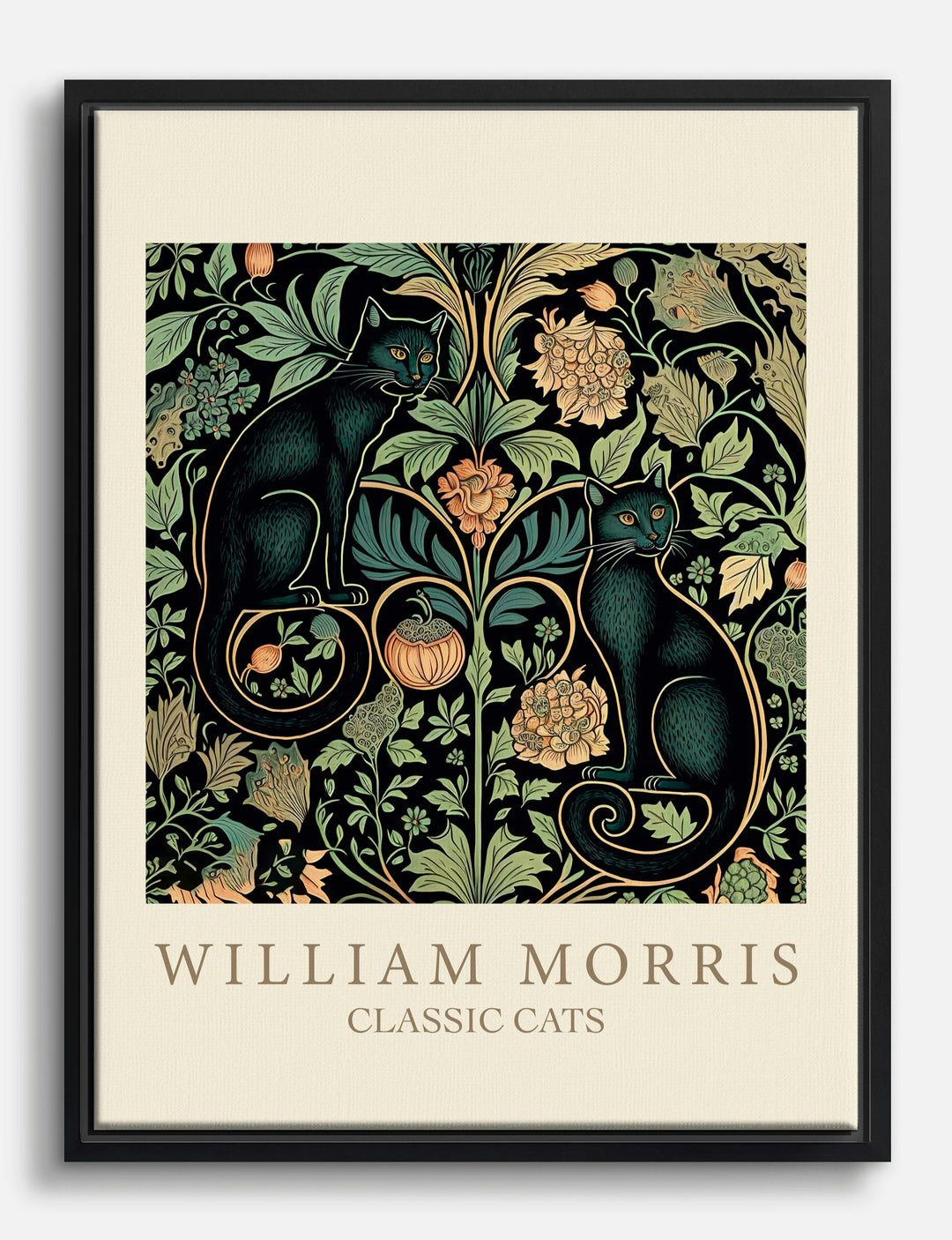 Bold, botanical, and just a little mysterious—this William Morris-inspired piece brings a lush, vintage vibe to any room. Two elegant black cats lounge among winding vines and blooming florals, creating a scene that’s both timeless and full of personality.