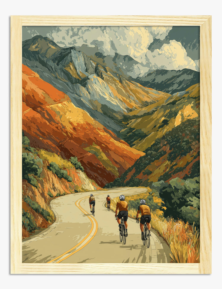 Feel the rush of freedom every time you glance at this vibrant scene of cyclists winding through golden mountain passes. The rich earth tones and rolling hills instantly energize your space, making every day feel like an open road adventure. Perfect for your living room or home office, this piece brings a sense of movement and possibility—ideal for anyone who loves the outdoors or craves a daily spark of inspiration. The warm blend of browns, oranges, and greens pairs effortlessly with both modern and rustic décor, adding character without overwhelming your style. Let this artwork remind you: your walls can be a window to new journeys, right from the comfort of home.