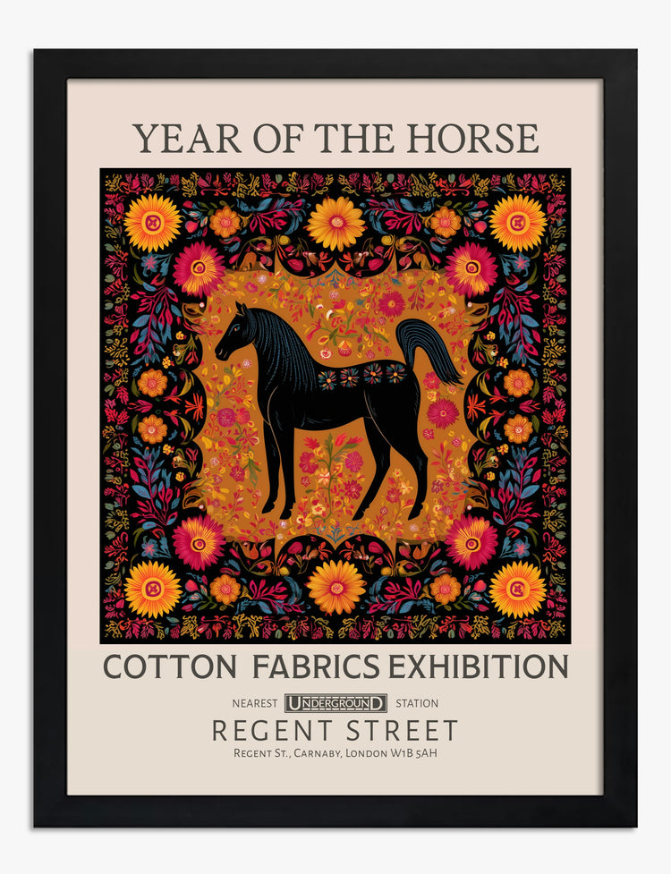 Step into a world where tradition meets bold color — this striking horse artwork brings instant energy and warmth to any room. The deep black horse, framed by vibrant florals and intricate patterns, feels like a celebration of heritage and new beginnings. Whether youre looking to add a sense of cultural richness to your living room or want a piece that sparks conversation in your entryway, this print makes it easy to show off your unique style. The rich reds, oranges, and golds pop beautifully against neutral walls and pair effortlessly with boho, eclectic, or even modern decor. Let your space tell a story of confidence and creativity. With this piece, youll feel that every day is a fresh start — and your home is as vibrant as you are.