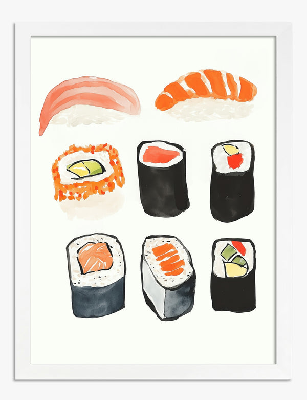 Lámina de surtido de sushi en acuarela