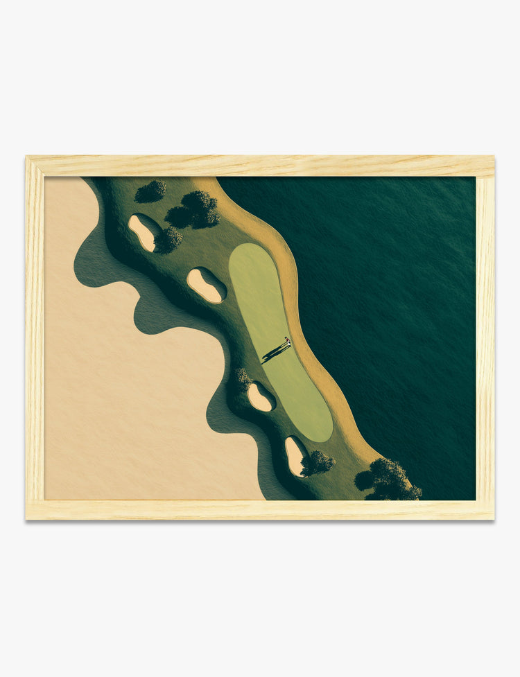 A bird’s-eye view transforms the ordinary game of golf into a striking work of art, where lush green meets sandy beige and tranquil blue. This piece brings a sense of calm focus and quiet sophistication to your space—perfect for anyone who appreciates a moment of escape or the beauty of open landscapes. Place it above your sofa, in your office, or even your bedroom to spark conversation and reflect your love of wide-open spaces. The soothing palette of soft greens, warm sands, and deep blue complements both modern and classic decor, making it easy to style with confidence. Let your walls tell a story of leisure, balance, and your unique eye for standout style—without ever picking up a club.