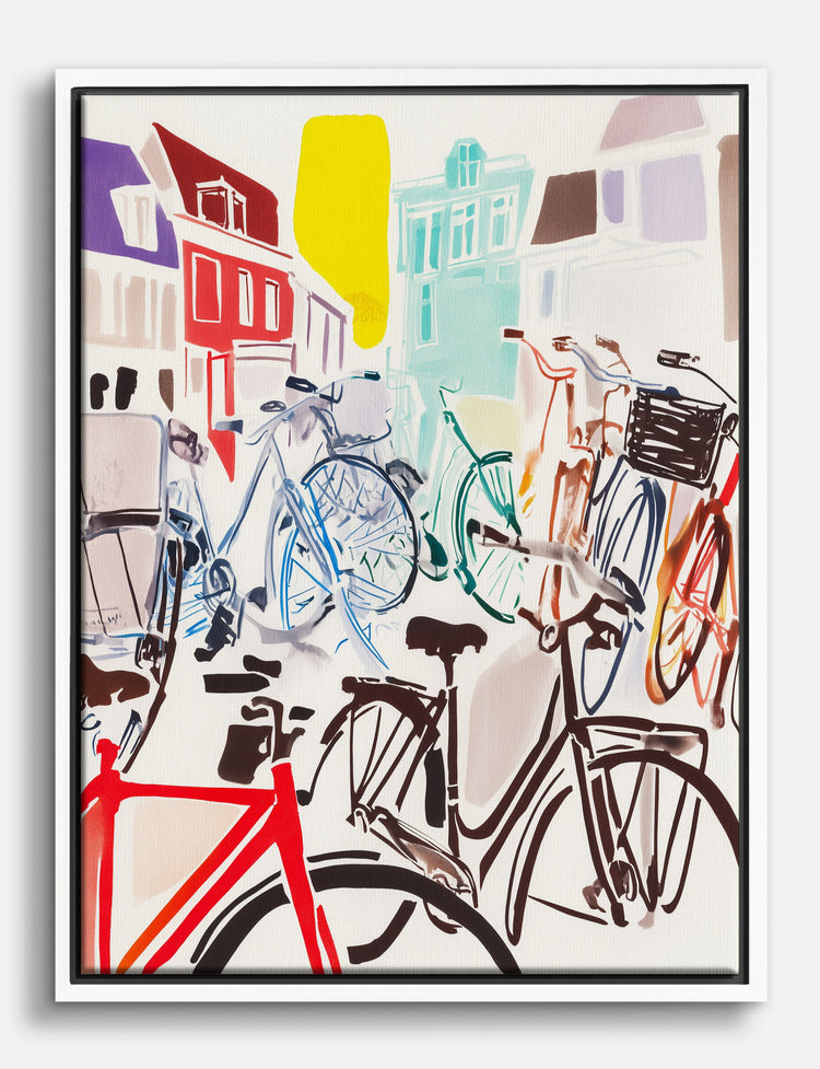 Bold lines and playful colors bring a lively city scene to life—right on your wall. This energetic print captures the everyday magic of bikes clustered on an Amsterdam street, instantly infusing your space with a sense of movement and European charm. Perfect for your living room or hallway, it’s a piece that sparks conversation and brings memories of wanderlust to mind. The mix of vivid reds, cool blues, and pops of yellow make it easy to style with both modern and eclectic decor, while the fluid, sketch-like quality adds a touch of creative spirit. You don’t have to travel far to feel inspired. With this artwork, you’ll transform any corner into a fresh, joyful escape—one that feels uniquely yours.