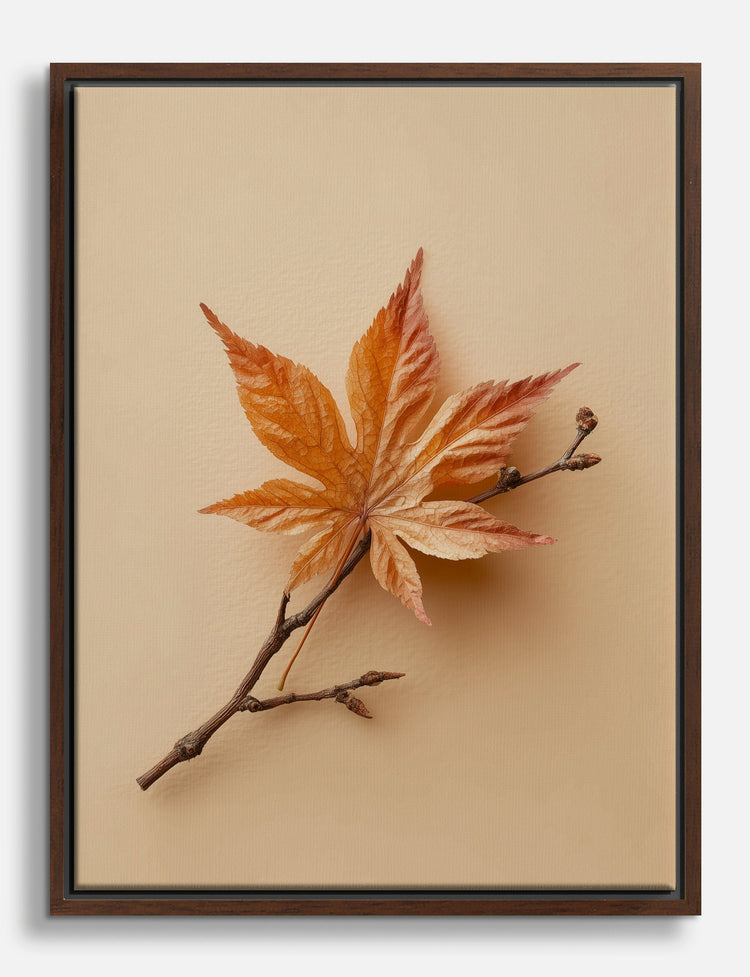 A single autumn leaf can change the whole atmosphere of your space. This striking branch—painted in shades of burnt orange and soft gold—brings the cozy, nostalgic vibe of fall right indoors. The delicate veins and natural gradients pop against a warm, creamy background, adding a touch of effortless elegance to any wall.