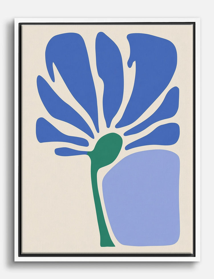 Bold shapes and unexpected curves bring this floral-inspired piece to life, making it a true conversation starter for your space. The vibrant blues and fresh green evoke a sense of calm and creativity, perfect for anyone looking to refresh their walls with a pop of modern style.