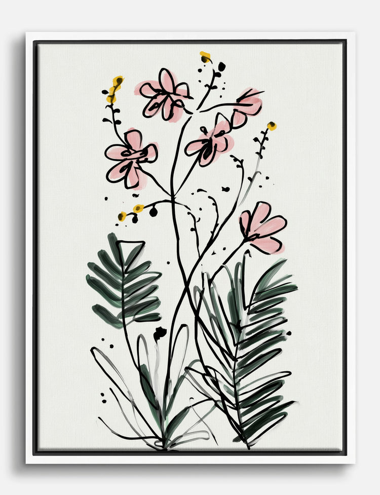 Soft pink petals and playful inky lines come together in this effortlessly charming floral piece. It’s like a fresh bouquet that never wilts, ready to bring a gentle burst of personality to your walls.