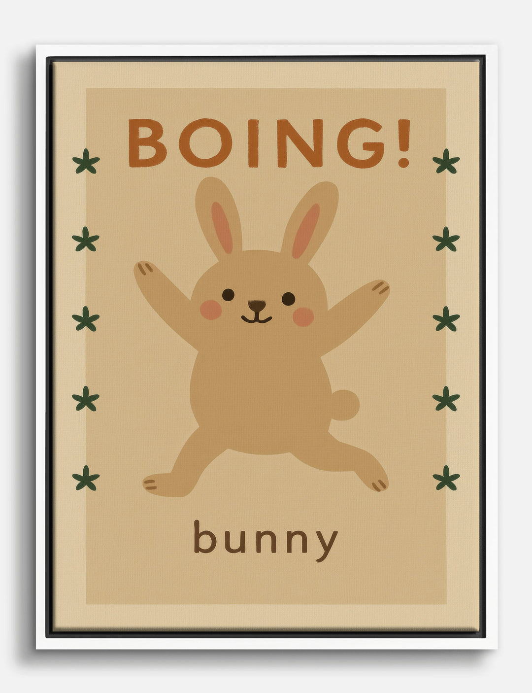 Bounce into joy with this delightful bunny illustration! Perfect for a nursery or kids room, this piece brings a playful energy that brightens any space. The soft beige tones complement a variety of decor styles, making it an easy addition to your home. Let this charming bunny inspire smiles and giggles, reminding you of the simple joys in life.