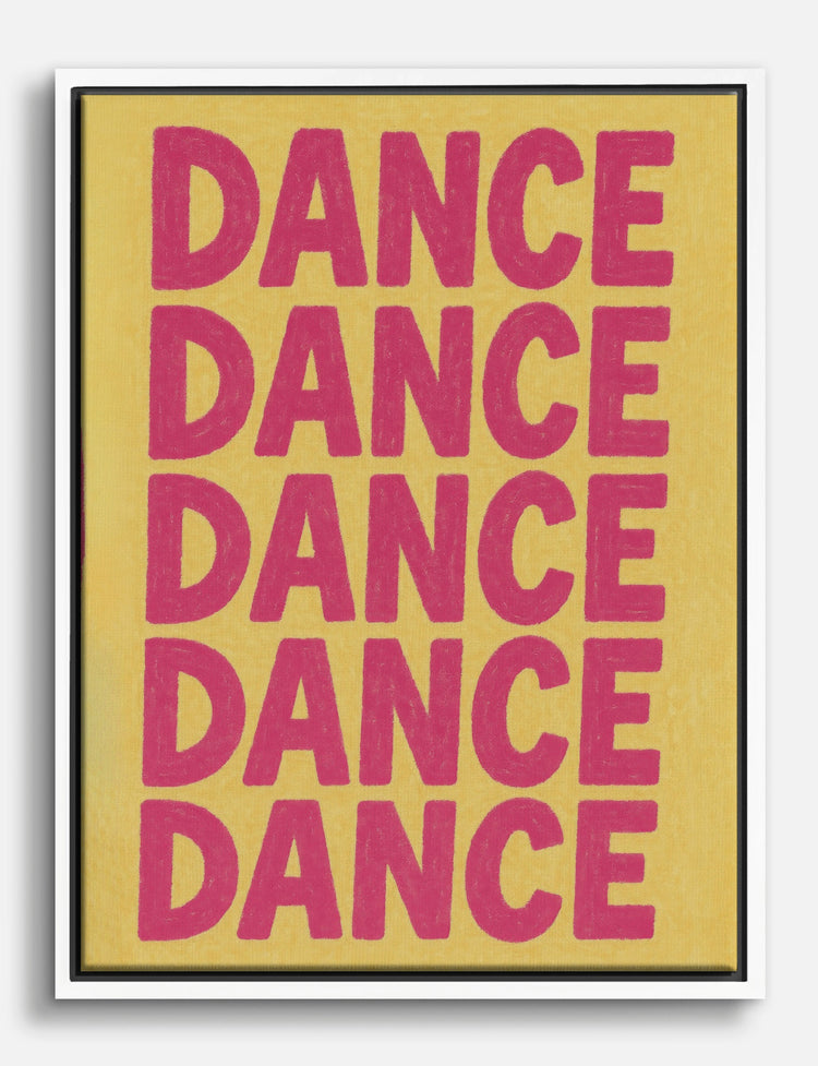 This piece is pure energy — a vibrant call to get up, move, and let your spirit shine. Five bold “DANCE” statements in hot pink leap off a sunny yellow background, instantly electrifying any space with positivity.