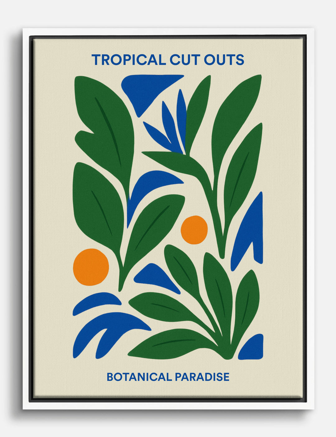 Fresh, bold, and bursting with life—this piece brings a slice of tropical vibrance straight to your walls. Crisp green leaves and playful pops of orange and blue create an energizing vibe that instantly brightens up any room.