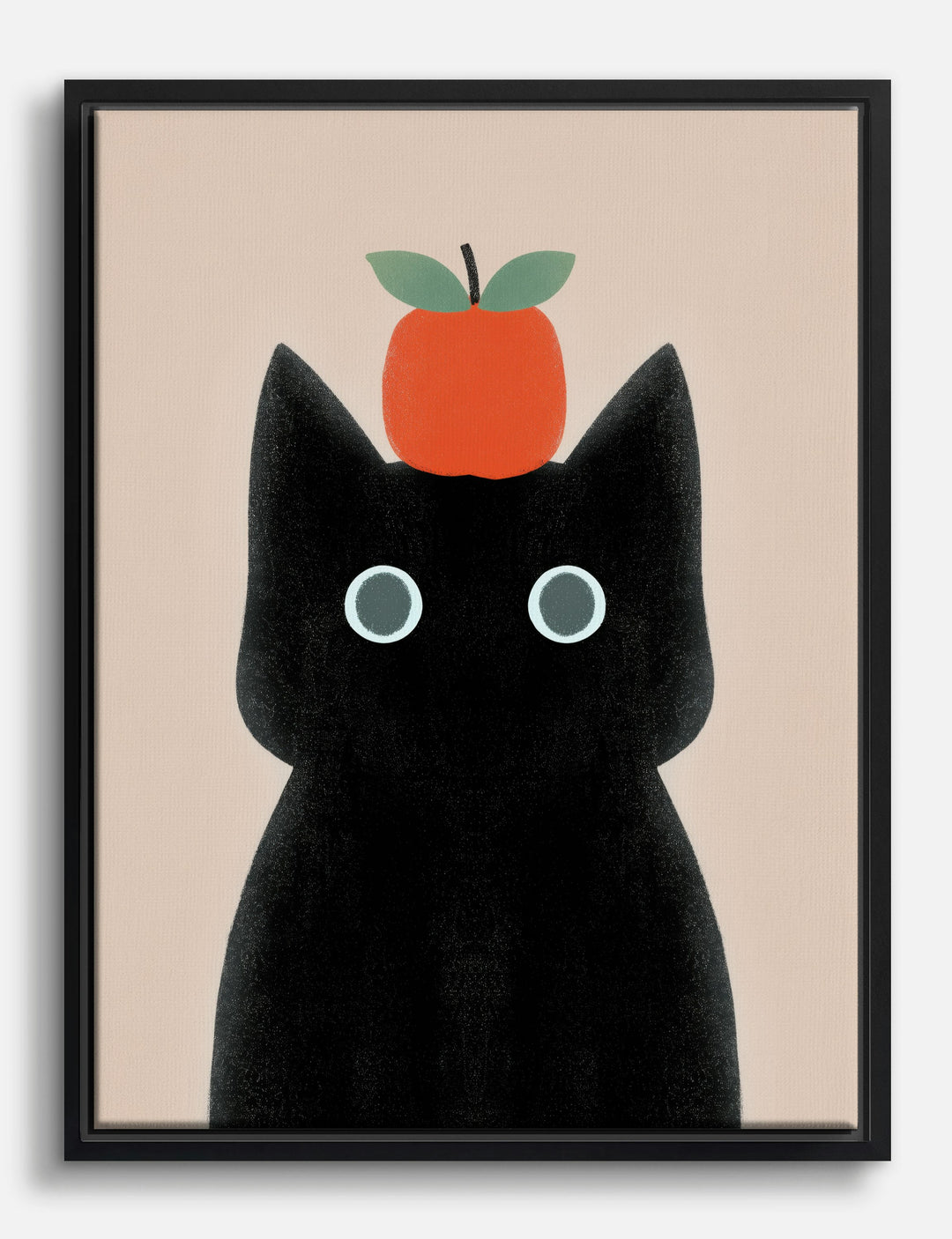 A pop of playful curiosity for your walls — meet the black cat with big, bold eyes and a cheeky apple perched on top. This piece instantly brings a sense of wonder and fun to any space, making it perfect for sparking smiles and conversation.