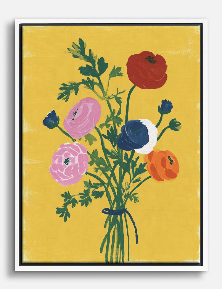 Like a burst of fresh energy, this vibrant floral bouquet instantly enlivens any space. The bold yellow backdrop makes every color—from lush pinks and oranges to deep reds—truly pop, inviting warmth and happiness into your home.