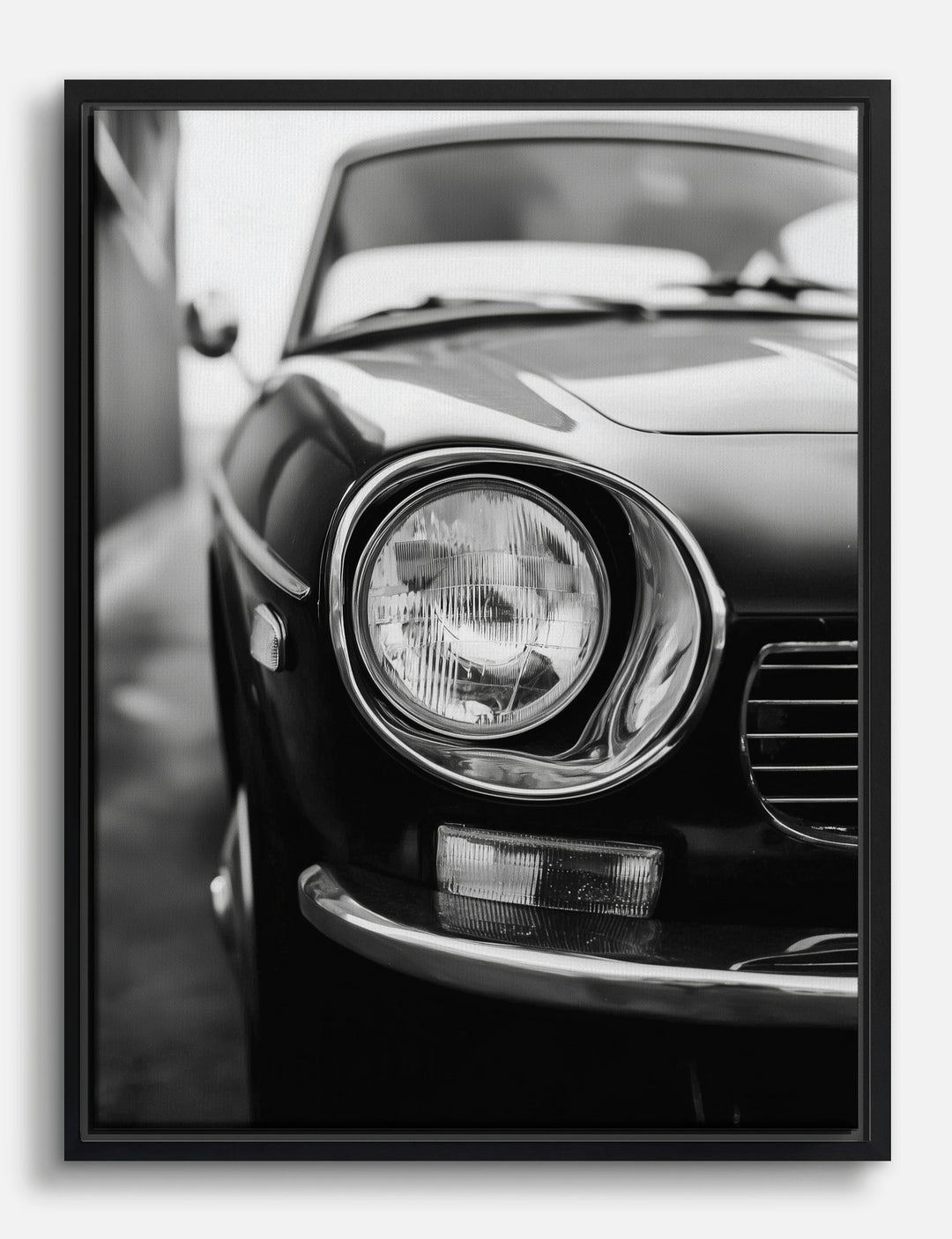 Theres something magnetic about the gleam of a vintage car, captured in crisp black and white. This striking close-up instantly transports you to an era of timeless style and effortless cool. It’s not just a photograph — it’s a statement that says you know how to make your space feel both personal and iconic.