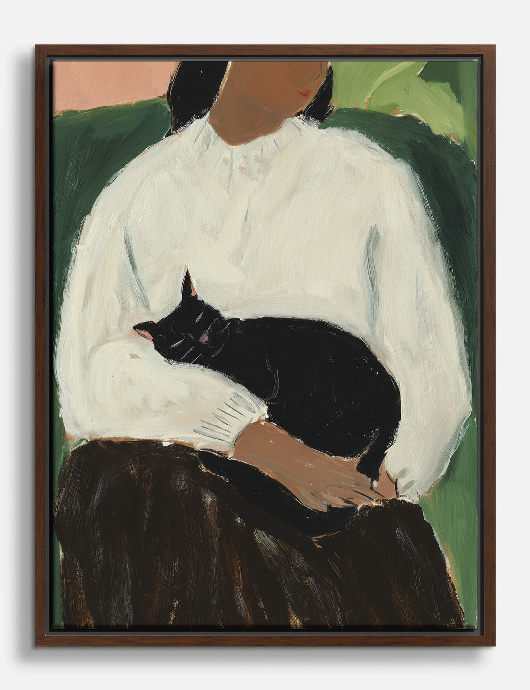There’s something undeniably soothing about the gentle presence of a cat curled up in your lap. This piece captures that perfect sense of calm, inviting a wave of comfort into your space. The warm, muted palette and soft brushwork make it feel like a cherished memory brought to life.