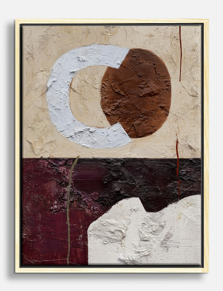Bold shapes meet cozy earth tones in this striking piece, instantly giving your space a gallery-worthy vibe. The textured interplay of creamy beige, deep brown, and a touch of crisp white feels both modern and warm—perfect for making your living room or office feel effortlessly pulled together. Love a room that feels grounded and welcoming? This artwork’s organic forms and rich palette set the tone for a space that’s both stylish and comforting. It pairs beautifully with minimalist, boho, or even eclectic decor, adding a unique twist without overwhelming your existing style. You’ll love how easy it is to refresh your walls and express your personal taste—no renovation required. Let this piece be your daily reminder that your home is your canvas.