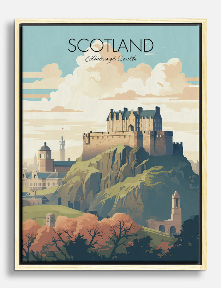 Bold history meets modern style in this stunning illustration of Edinburgh Castle perched high above the city. Let this vintage-inspired piece bring a sense of adventure and pride to your living room or office—its like a window to Scotland’s storied past right on your wall. The fresh sky blues and warm earthy tones blend effortlessly with any décor, adding a pop of character and conversation to your space. Make your home feel both timeless and uniquely yours.