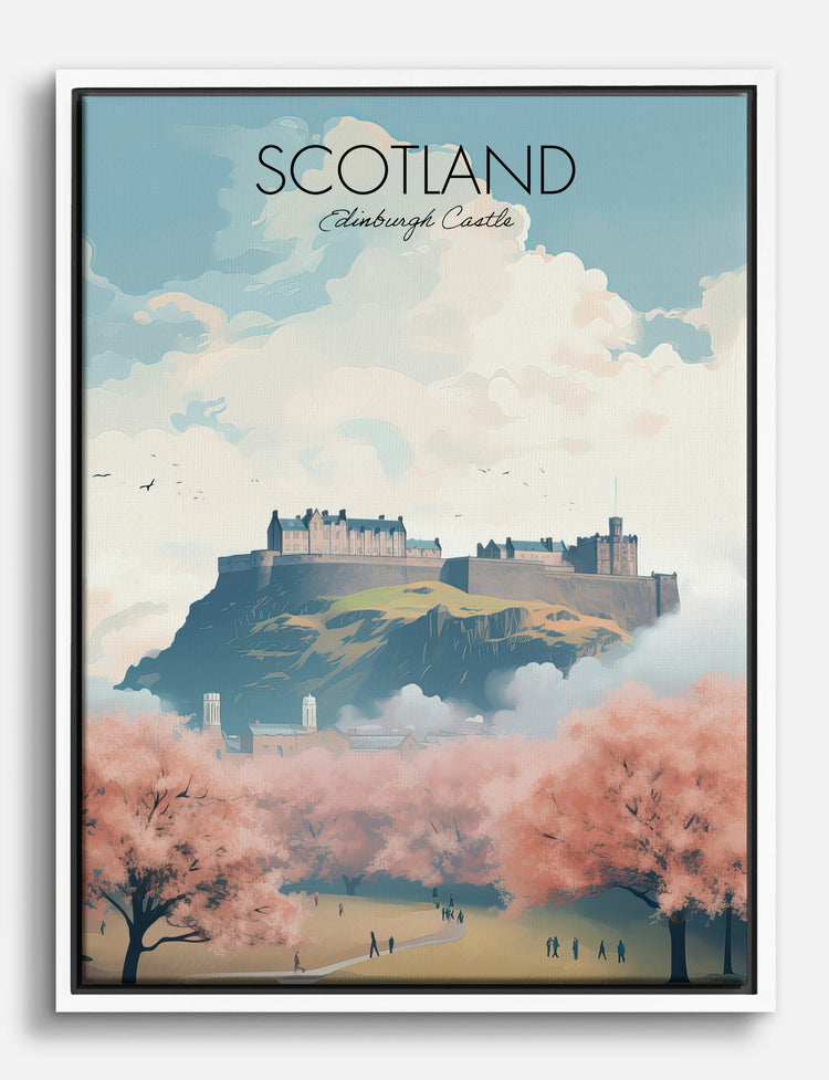Soft pink trees frame the legendary Edinburgh Castle, inviting a sense of calm grandeur into your space. This piece captures that magical Scottish morning—where history rises above a dreamy landscape and every glance offers a breath of fresh air.