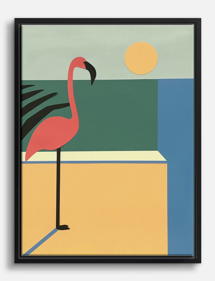 Step into a world of serene elegance with this captivating flamingo piece. Its vibrant pink hues against a minimalist backdrop create a striking focal point, perfect for transforming your living space. Whether in your living room or bedroom, this artwork adds a splash of color and a touch of sophistication that complements both modern and eclectic decor styles. Let this graceful flamingo bring a sense of joy and style to your home.