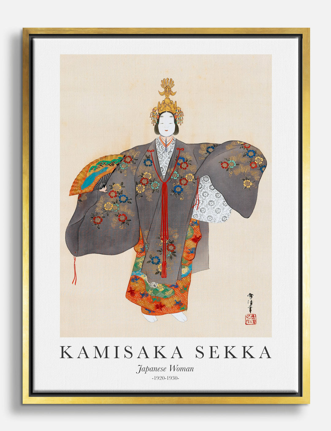 Grace meets tradition in this stunning depiction of Japanese beauty. The intricate kimono, adorned with vibrant florals and gold accents, instantly brings a sense of cultural richness and quiet sophistication to your walls.