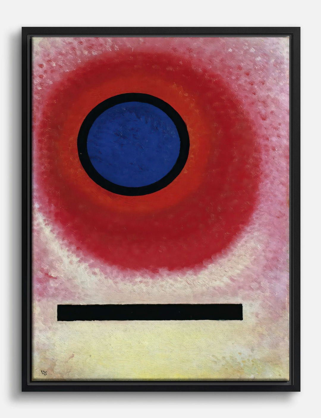Let your walls radiate with modern energy—this Kandinsky-inspired piece is a bold celebration of color and shape. A deep blue circle pulses at the center, surrounded by a vibrant red aura, grounded by a striking black line below. It’s the kind of statement that instantly elevates any room, adding just the right amount of intrigue and sophistication. Picture it above your sofa or as the finishing touch in your bedroom retreat—wherever it lives, it’ll spark curiosity and pride. The palette is both lively and grounding, making it perfect for spaces that crave a pop of personality without overwhelming your style. With this on your wall, you’ll feel like your home really is your canvas—and you’re the artist.