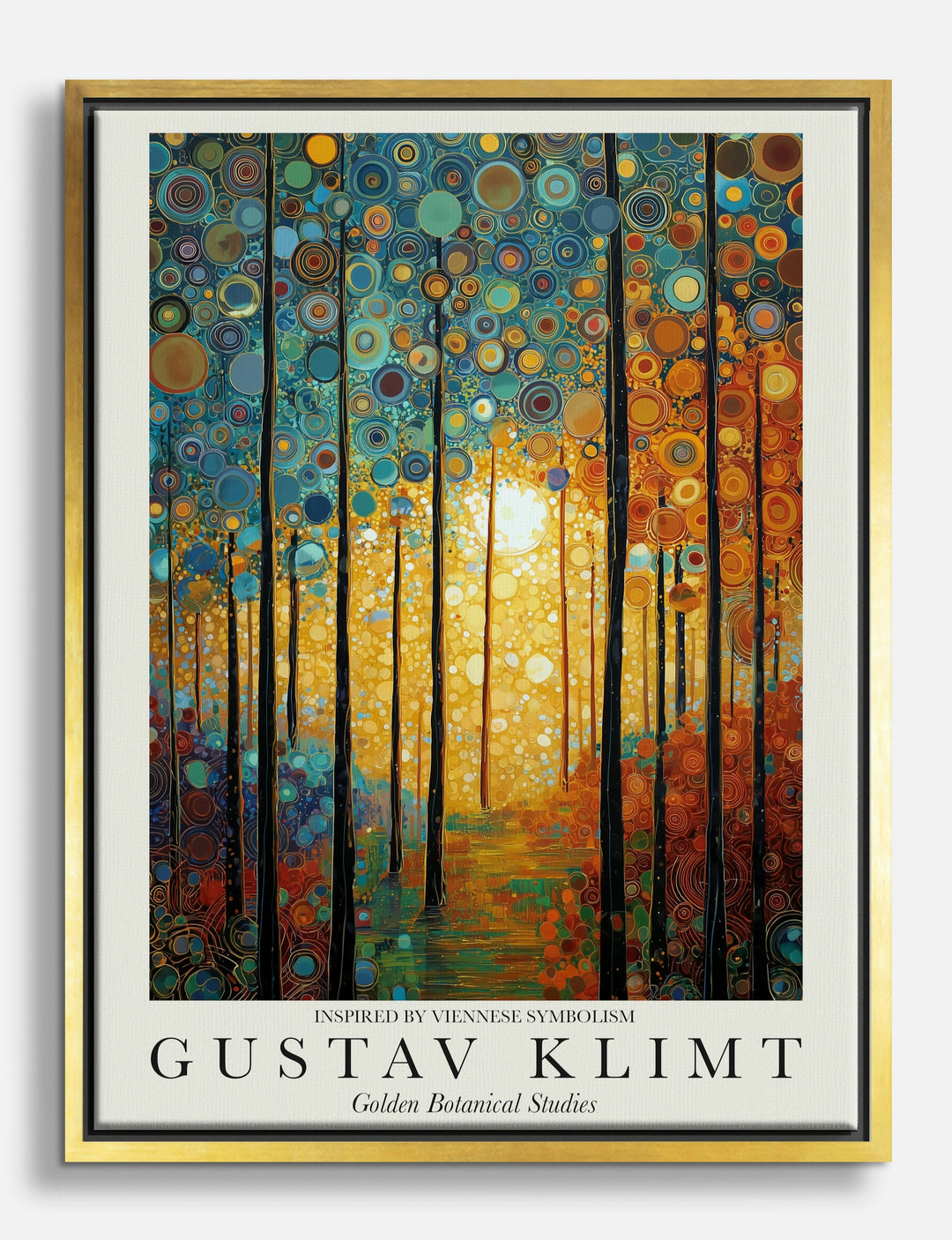 Step into a forest where sunlight feels magical every single day. This Gustav Klimt–inspired piece brings the golden hour right into your home, infusing your space with warmth and a sense of wonder. Vivid blues and radiant golds pop against each other, making this artwork a true showstopper for your favorite room.