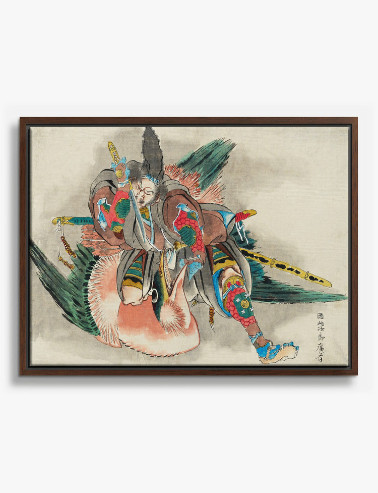 La audacia de la tradición se une a una narrativa vibrante en esta pieza inspirada en Hokusai. Un guerrero dinámico, resplandeciente en una armadura colorida, se alza sobre una grulla majestuosa, evocando relatos de valentía y mito de siglos pasados. Perfecto para el salón o el estudio, este lienzo aporta dramatismo y profundidad cultural a tu espacio. Su mezcla de marrones intensos, rojos y tonos verde azulado combina de maravilla con la decoración moderna y vintage, añadiendo una capa de intriga y conversación a cualquier pared. Que este lienzo te recuerde que tu hogar puede ser tu refugio de expresión personal, donde la herencia y el estilo se unen sin esfuerzo. Sentirás un destello de orgullo cada vez que lo veas, sabiendo que tu espacio es tan único y lleno de historia como tú.