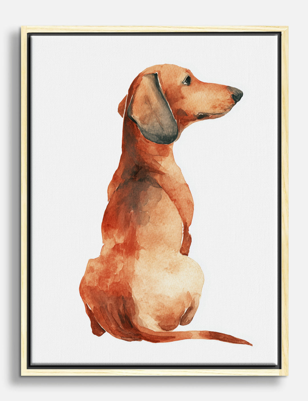 Convierte cada mirada en una sonrisa con este encantador teckel en acuarela. Hay algo especialmente acogedor en sus tonos cálidos y terrosos y en esa mirada leal: confort instantáneo en tu pared. Esta pieza aporta un toque de personalidad y desenfado a cualquier ambiente, tanto si decoras la sala de estar, iluminas un dormitorio o añades un rostro amable a tu oficina en casa. Las suaves aguadas en marrones y naranjas combinan sin esfuerzo con los neutros modernos y con una decoración acogedora y ecléctica. Deja que tu hogar refleje tu lado más juguetón y que tus invitados sepan que el gran estilo nace del corazón (y de un poquito de meneo de cola). Asequible, único y adorable a más no poder: es la manera de Fab de hacer tu hogar tan alegre como tú.