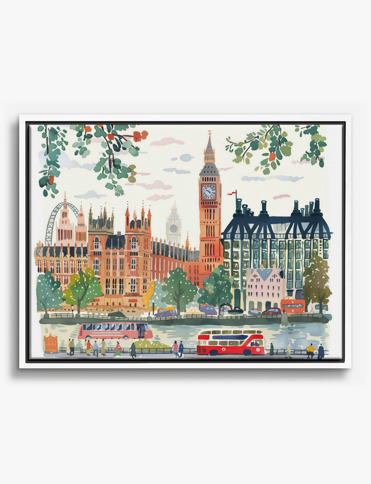 London Cityscape Watercolor Canvas Print