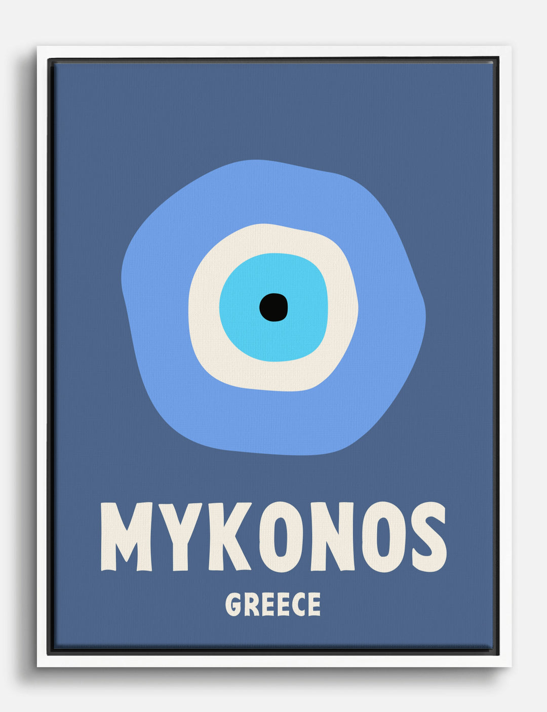Bold, graphic, and full of Greek charm, this Mykonos-inspired print instantly brings a hint of the Aegean to your space. The iconic evil eye motif radiates positivity and a touch of wanderlust, making it the perfect conversation starter for your living room or entryway.