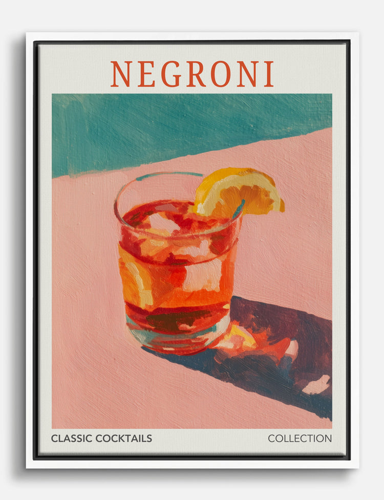 Bold colors and sun-drenched vibes—this Negroni-inspired piece instantly energizes your space. The crisp glass, topped with a cheerful citrus slice, pops against a playful backdrop, serving up a dose of joy with every glance.