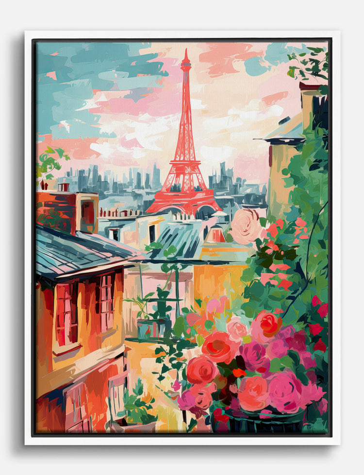 A bouquet of pink blooms and the iconic Eiffel Tower—this piece brings the magic of Paris right into your home. Let your walls whisper stories of love, adventure, and sun-drenched mornings overlooking the city of lights.
