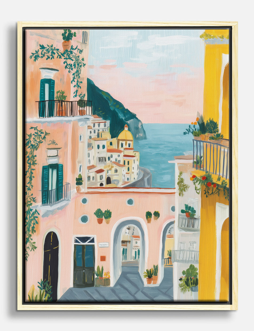 Sun-washed walls and winding alleyways invite you to linger a little longer in this vibrant slice of the Amalfi Coast. Let your space bloom with coastal charm—this print instantly brings warmth, joy, and a touch of wanderlust to any room.