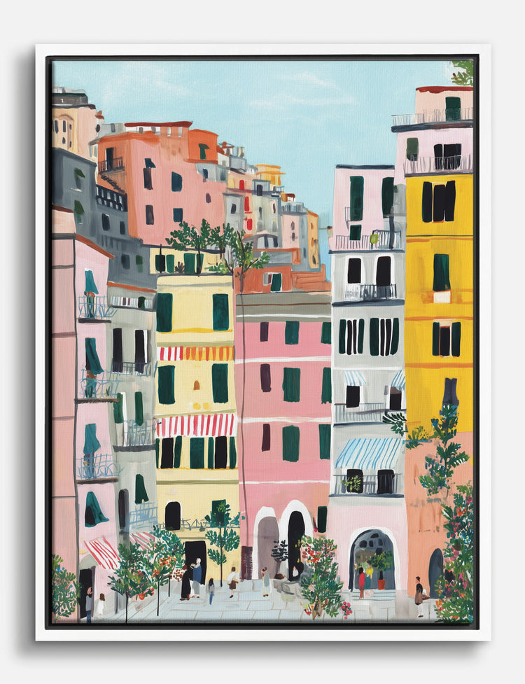 Picture yourself wandering sunlit streets lined with candy-colored buildings and leafy balconies — that’s the vibe this piece brings home. Every brushstroke pops with playful Mediterranean energy, making your space feel like a permanent vacation.