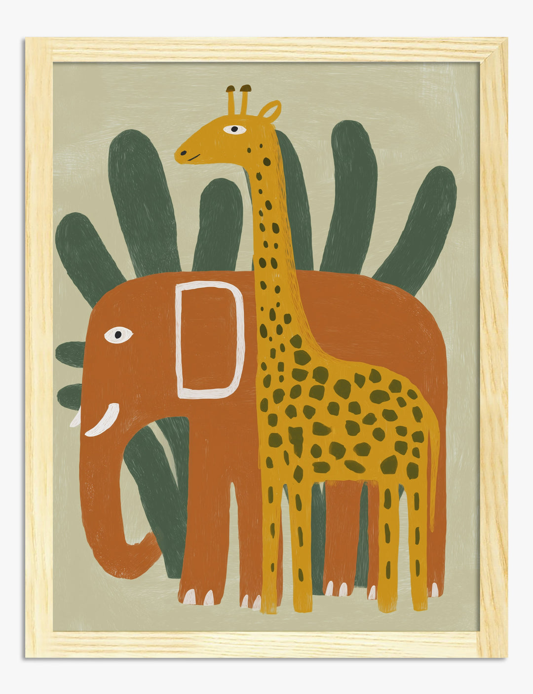 Who says your walls can’t be a source of joy? This charming duo—an elephant and a giraffe—brings a burst of playful energy and warmth to any space. Their friendly faces and bold shapes create a sense of adventure that turns every day into a little safari. With earthy browns, golden yellows, and leafy greens, this piece pops against neutral walls and complements both modern and boho decor. It’s the perfect way to add personality to a kids’ room, nursery, or anywhere you want a touch of cheer. Let your little one’s imagination roam free, or simply enjoy the smile this artwork brings to your own space. Great style really is this easy—and this fun.