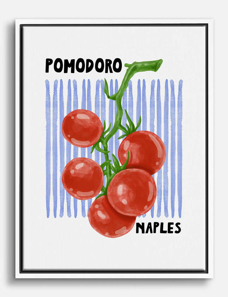 Bursting with the juiciness of sun-ripened tomatoes, this playful piece instantly energizes your kitchen or dining space. The bold reds and lush greens pop against a soft blue backdrop, making every glance a mini escape to the markets of Naples.