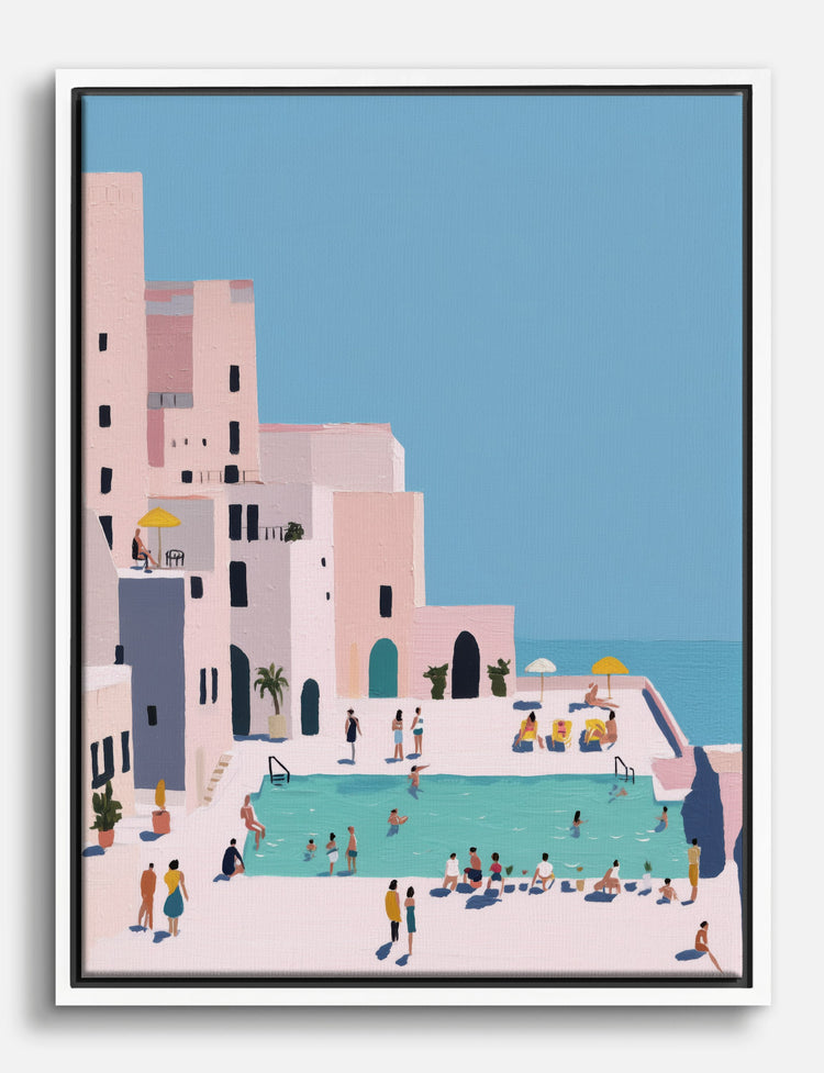 Sun-soaked walls and a sparkling turquoise pool instantly transport you to endless summer days. This piece brings an effortless sense of vacation—right to your living room or bedroom—where every glance feels like a breath of fresh, seaside air.