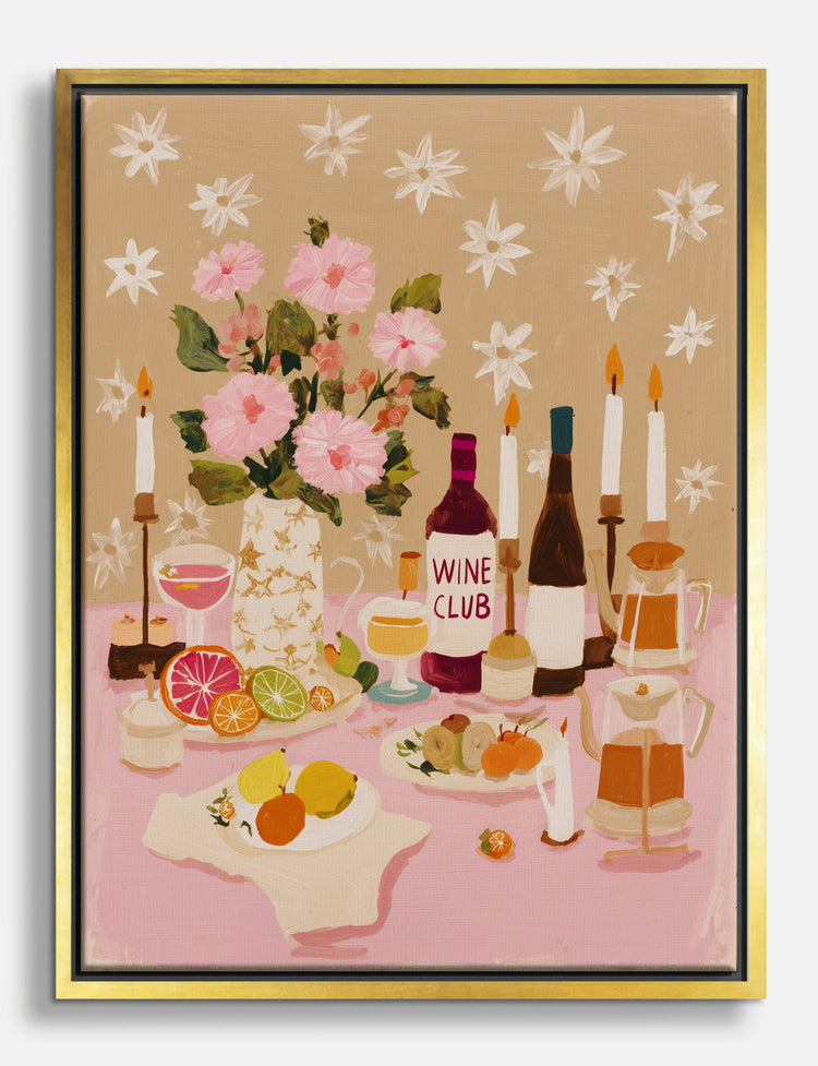 A table set for celebration, this piece instantly transports you to a place where every night feels special. Pink blooms, citrus slices, and wine bottles mingle with glowing candles, inviting you to linger a little longer.