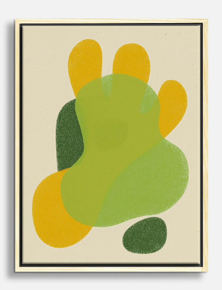 Let your walls breathe easy with a splash of playful color. This abstract composition layers soft greens and sunny yellows, creating a fresh pop that feels both calming and energizing. It’s the kind of piece that quietly lifts your spirits and invites a smile every time you walk by.